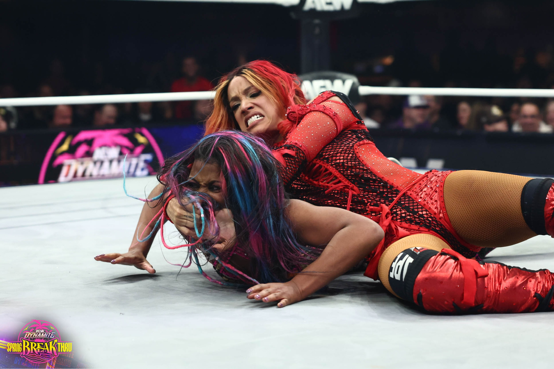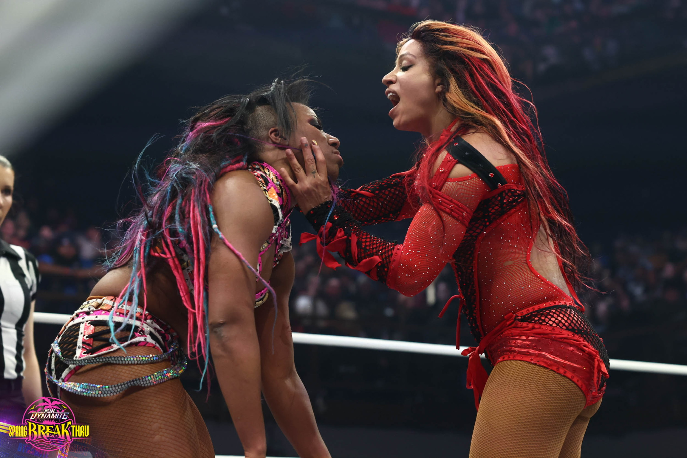 Now, let’s talk about stepping into the ring! Walking in as “4 Belts Moné” to face one of my dream opponents, the Fallen Goddess Athena, was truly a surreal moment. The energy at AEW Spring Breakthrough in Boston was electric! There’s something magical about performing in a city that has always held a special place in my heart. The crowd was phenomenal, and the atmosphere at the stunning new MGM Music Hall, right next to Fenway Park, was simply unforgettable—a perfect backdrop for such a historic night.